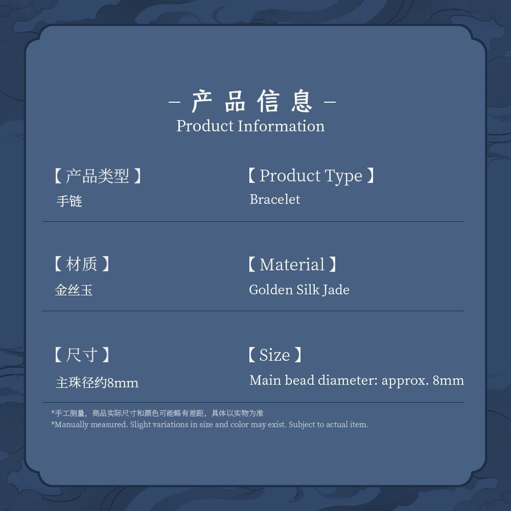 Crafted from natural, untreated Xinjiang Jinsiyu Jade, this bracelet is paired with refined multicolor decorative beads. Every detail reflects elegant craftsmanship rooted in Taoist Five Elements and Feng Shui traditions, carrying profound symbolism and the timeless blessings of Chinese culture.