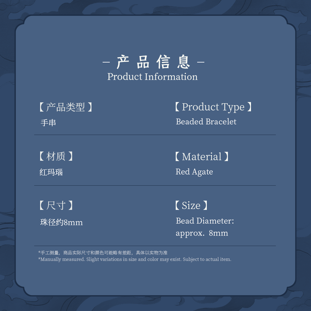 The design inspiration for this red agate bracelet comes from the "Fire" wisdom in Eastern Five Elements philosophy. Each crystal is carefully hand-selected and meticulously strung, imbuing it with artisanal warmth. It aims to bring positive transformation to your life by strengthening "Fire" energy. When you choose to ignite it and courageously pursue your goals, abundant prosperity will naturally respond to you.