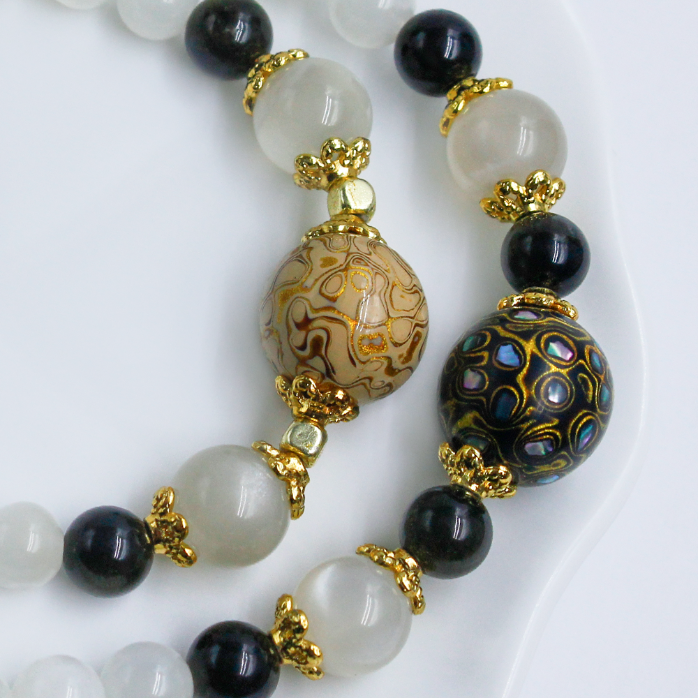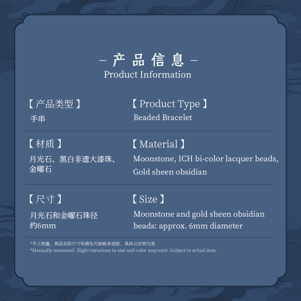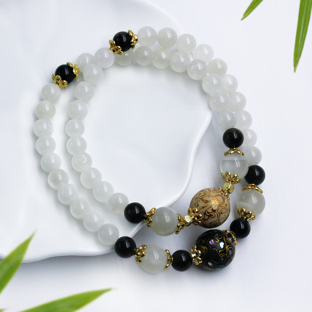 Material: Moonstone,Traditional Lacquer, Gold Obsidian